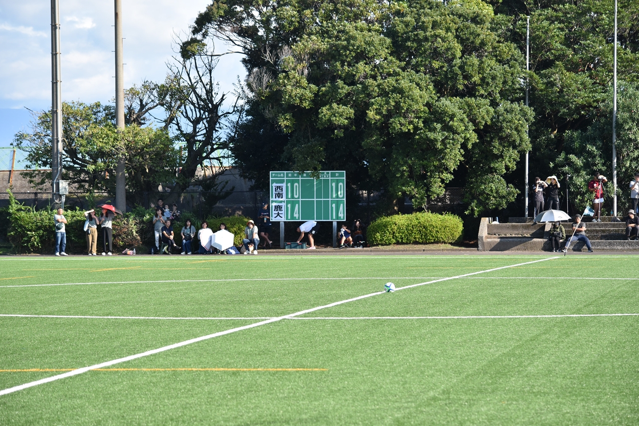 鴨池緑地球技場(鹿児島県鹿児島市)にてAリーグ最終戦が10月下旬と思えないような快晴で暑いの中、福岡含め遠くから多くの西南大応援Tシャツを着た保護者やOBが応援に駆け付ける中でK.O。