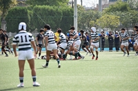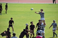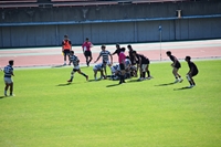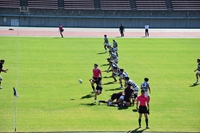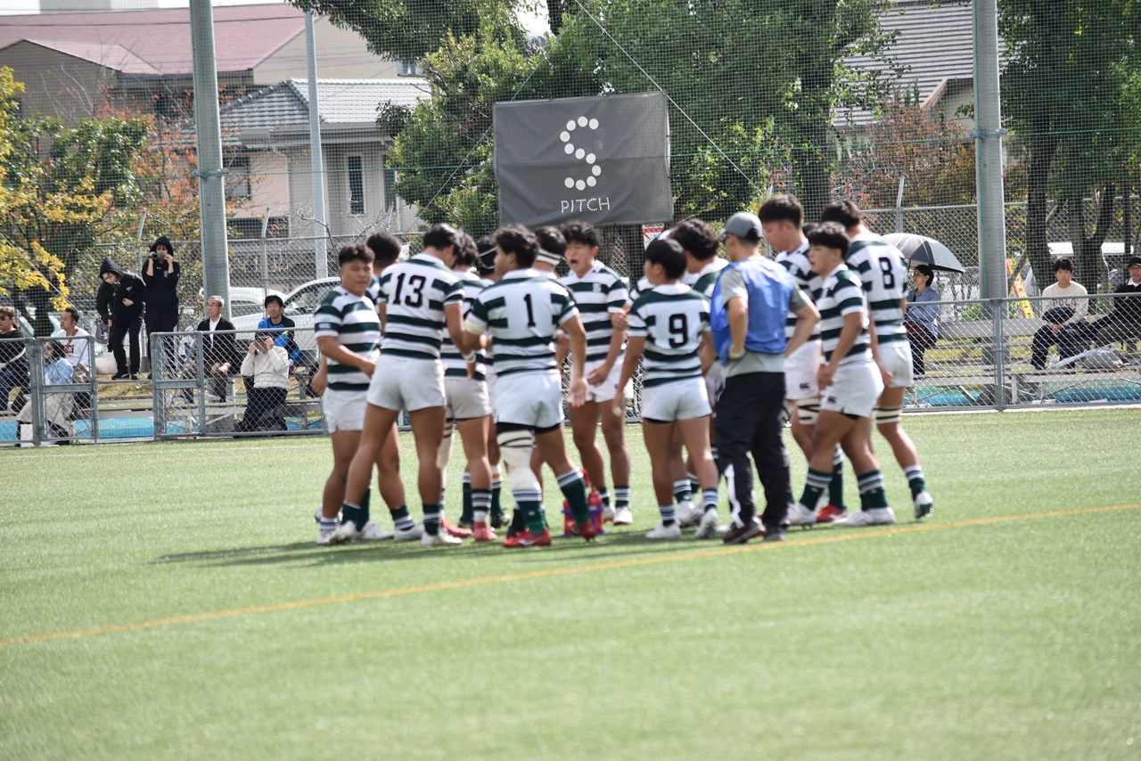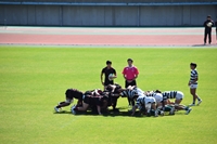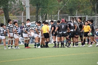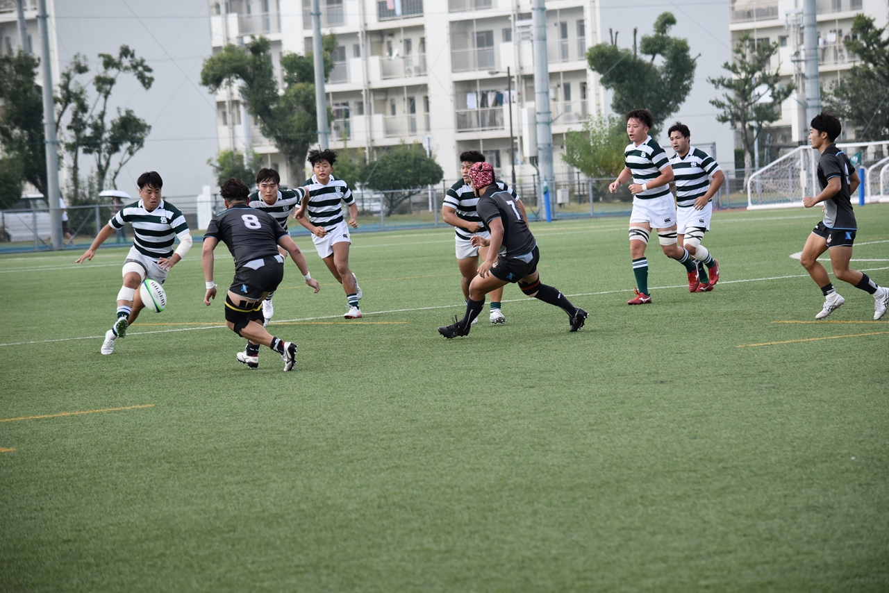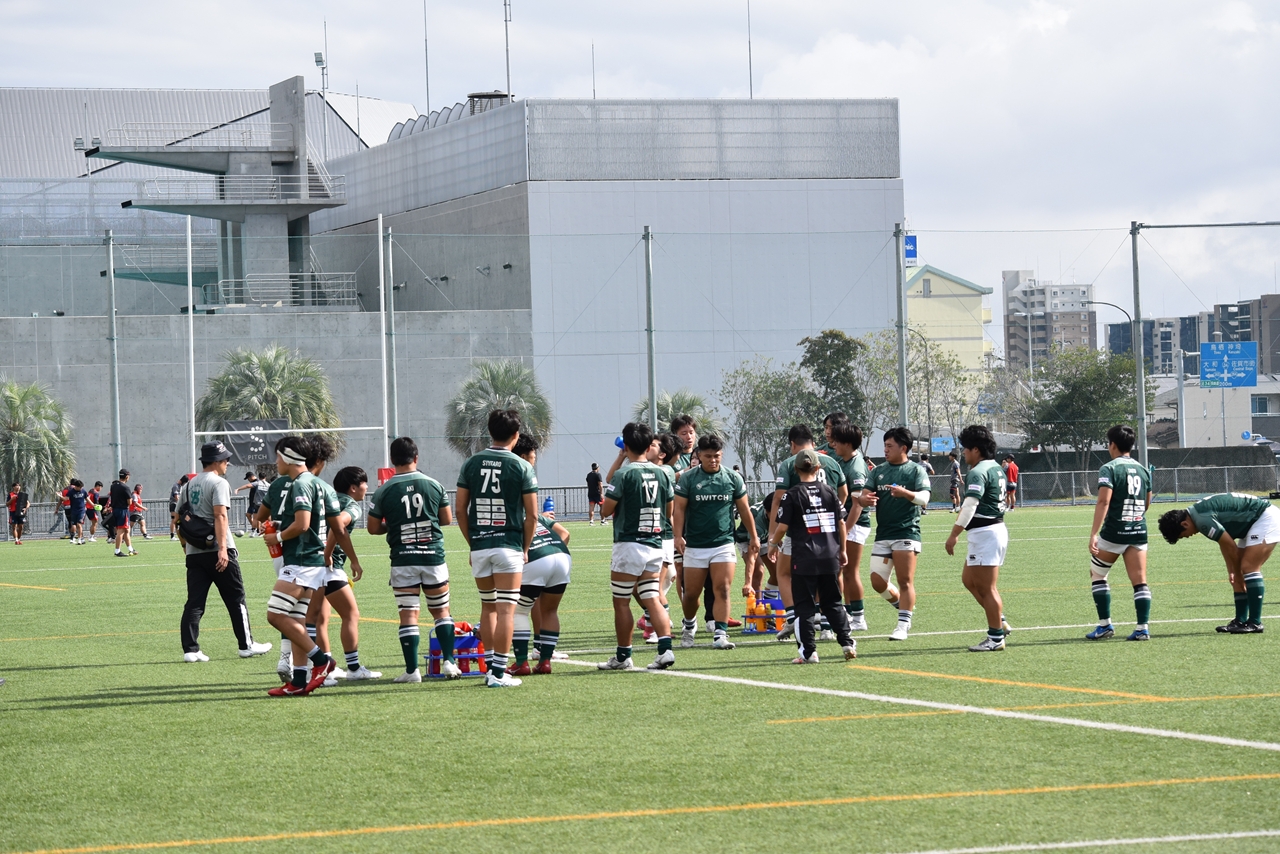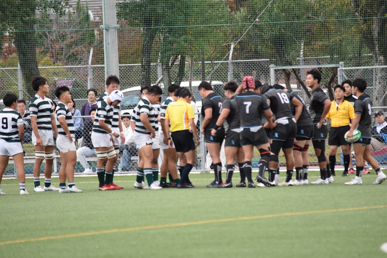 リーグ戦では西南大に惜敗した福岡大学は、キックオフからかなり気合が入った模様、前半開始早々トライを先取する展開、西南大は果敢なディフェンスと粘り強いアタックで相手に主導権を与えない試合展開で前半中盤までは接戦で試合をすすめる、しかし中盤以降左右のウイングまで大きく左右に展開する福大について行けず振り切られ前半を2トライ差で折り返す。