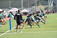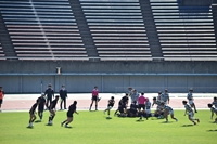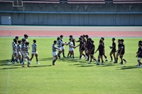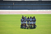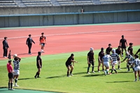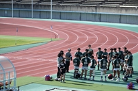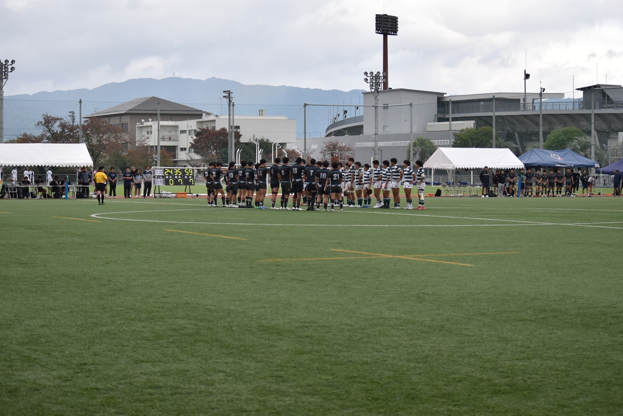 午前中の雨も上がり素晴らしい人工芝のグラウンドに西南学院大学並びに九州共立大学ラグビー部が順位決定戦に臨みました。